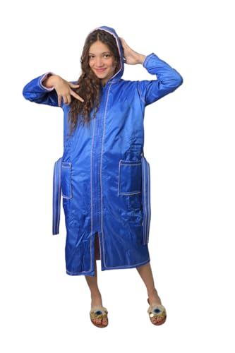 Generic - بورنس سباحة بناتي رداء بحر أطفال طبقات من الخارج WATERPROF ومن الداخل فوطة قطن به غطاء الرأس