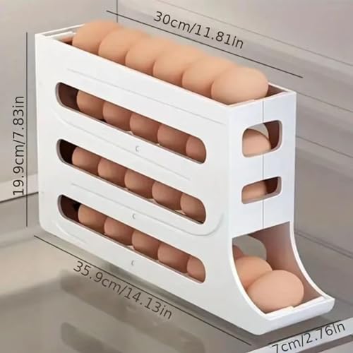 - Optimized Space Efficiency: With a large capacity to hold up to 30 eggs, our egg storage box maximizes fridge space utilization while maintaining egg freshness and security. The vertical egg rolling storage rack bin efficiently utilizes vertical space, ensuring easy accessibility while keeping eggs neatly arranged.