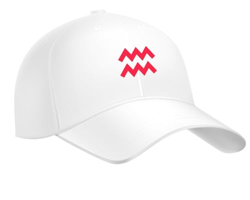 Generic - WHITE CAP printed with distinctive shapes, printed on your zodiac sign (AQUARIUS), in RED for unisex