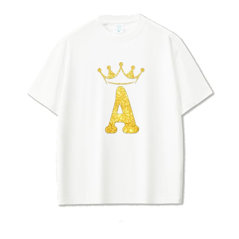 Generic - تيشرت قطن ابيض كاجوال مطبوع عليه حروف تاج (A) مقاس (L)