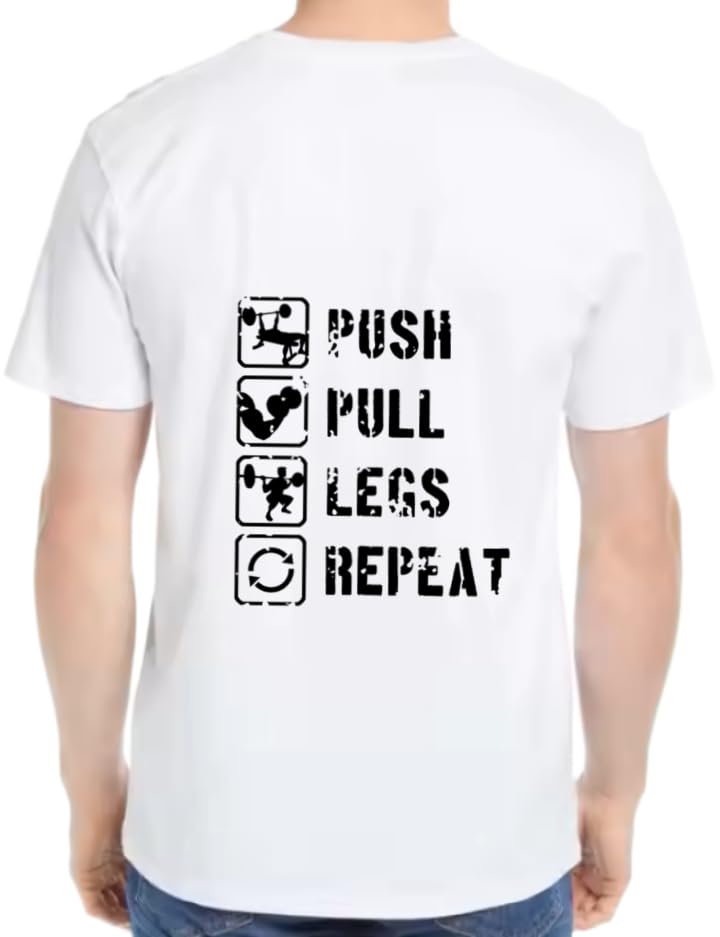 Generic - white oversize Youth T-SHIRT back art over size TEXT job work 4 push pull legs repeat