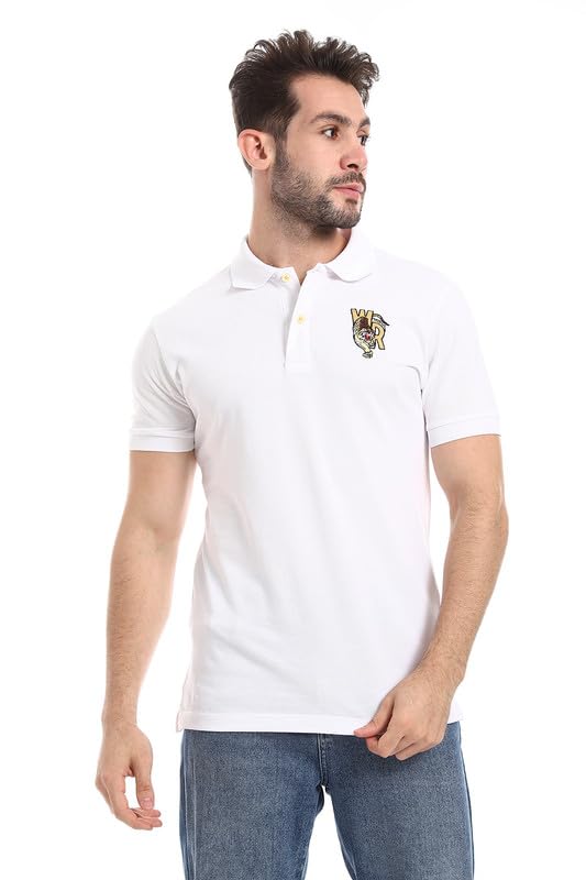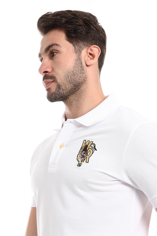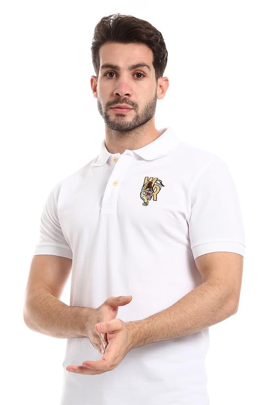 White Rabbit - White Rabbit Men Stitched Chest Logo Pique Patterned Polo Shirt - Black