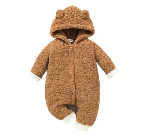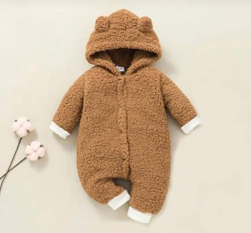 Generic - Winter Baby Suit with Soft Fur Hooded Coverall - Brown Infant, 6-12 Months