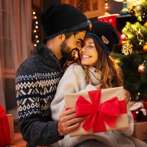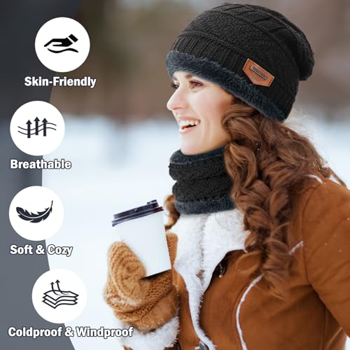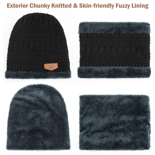 Trifabricy - Winter Beanie Hat Circle Scarves Touchscreen Gloves Set, Warm Thick Fleece Lined Skull Cap Gloves Neck Warmer for Women Men