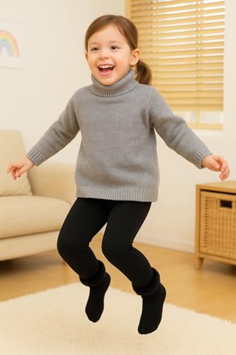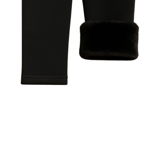 Generic - Winter Kids Thermal Leggings, Black Cotton Blend, Fleece-Lined with Fur Cuffs, Size S for 2-4 Years
