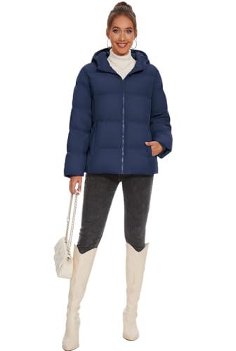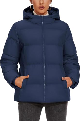 Generic - Winter Puffer Jacket with Hood, Navy Blue, Zip Front Closure