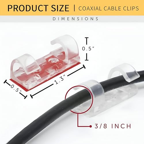 - Each cable clip measures 1.25" long, 1.25" wide and high and is specially designed to accommodate wires with a maximum 0.27" diameter. With 30 pieces per pack, the product is perfect for organizing multiple cables, providing an effective solution for anyone looking to remove messes from their workspace or home.