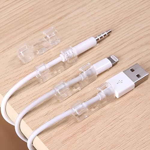 - Self-adhesive cable clips are designed for optimal cable management, allowing for easy organization of different wires such as power cord, USB cables and audio cords. Its translucent design seamlessly complements various environments, ensuring a tidy look, while the ability to sort the cables by color adds a personal touch to your workspace.