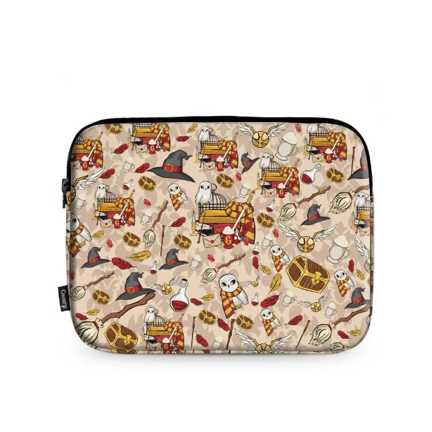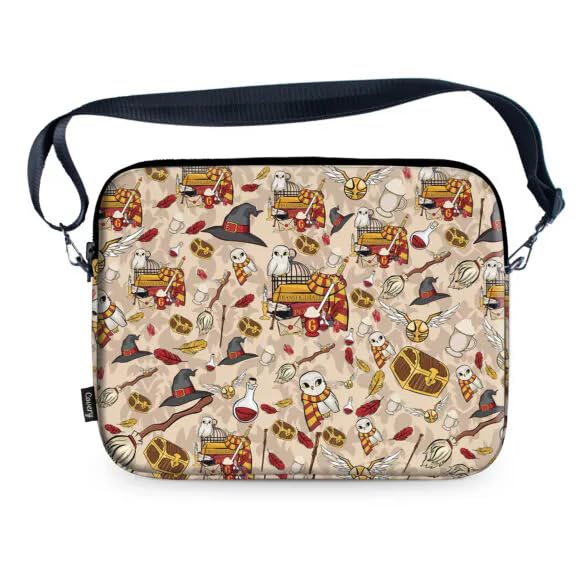 حقيبة ماسنجر للاب توب بنمط سحري من ويزارد، حزام كتف قابل للتعديل، تصميم بومة وعصا، بيج