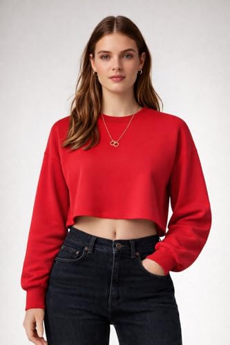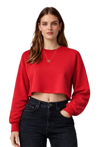 Generic - هودي قصير رياضي نسائي، سترة كاجوال أحمر بأكمام طويلة، قطعة علوية قصيرة للتمرين والرياضة