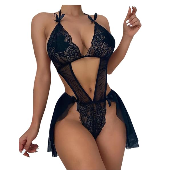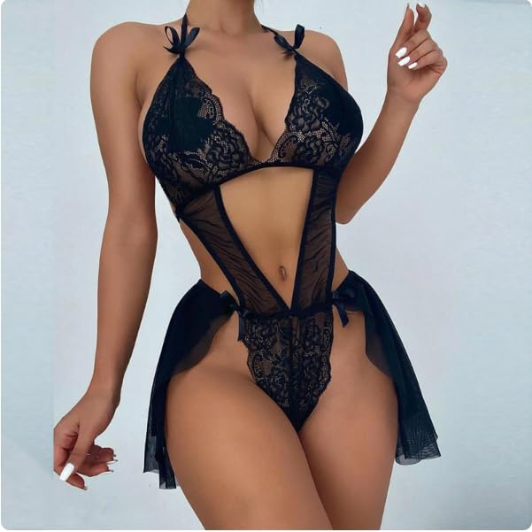Generic - قميص نوم لانجري نسائي أنيق - خامة تل × دانتيل بيبي دول اسود