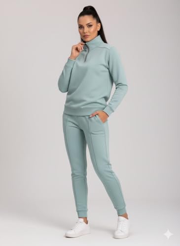 Generic - Women Fashion Comfortable Solid Color Stand Collar Short Zipper Casual Long Sleeve Jogging Pants Elastic Waist Joggers Set Perfect for Jogging Workout Lounge at Home