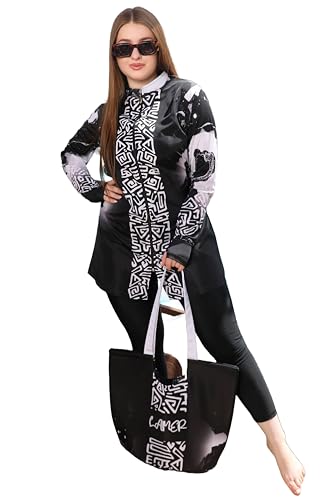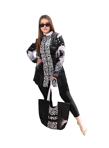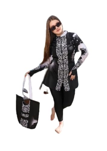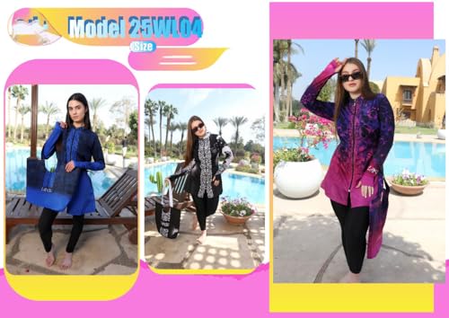 9Street Corner - ملابس سباحة للنساء والبنات بوركينى 4 قطع توب كم طويل وبنطلون وشنطة بحر من نفس اللون وتربون عالى الجودة كود 25WG04