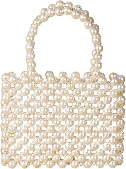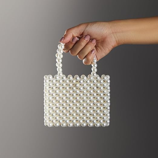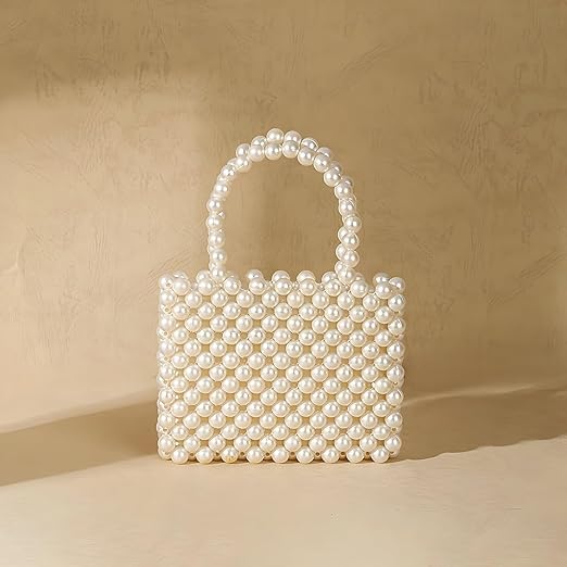 Generic - Women Pearl Beaded Top Handle Bags For Ladies Clutch Handle Bag Trendy Pearl Bag