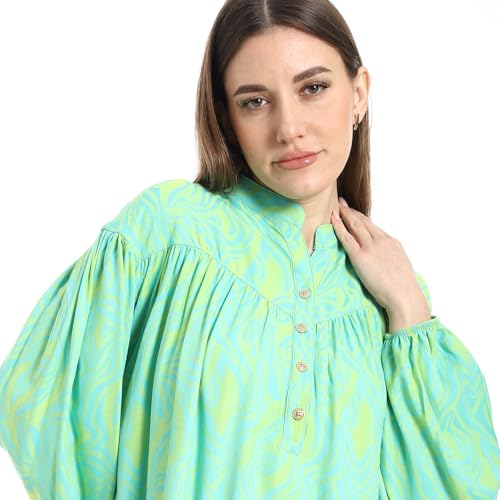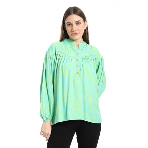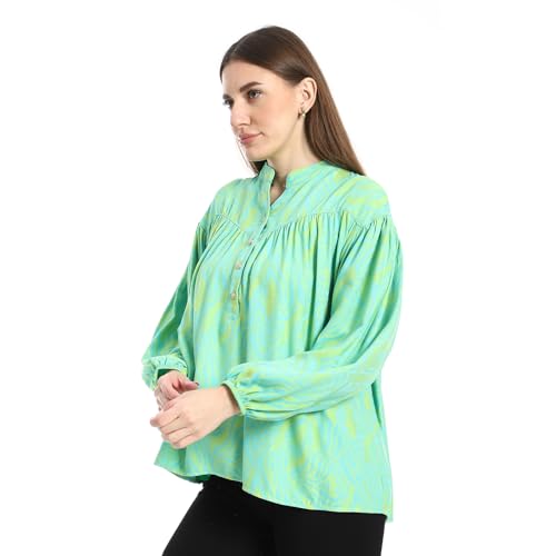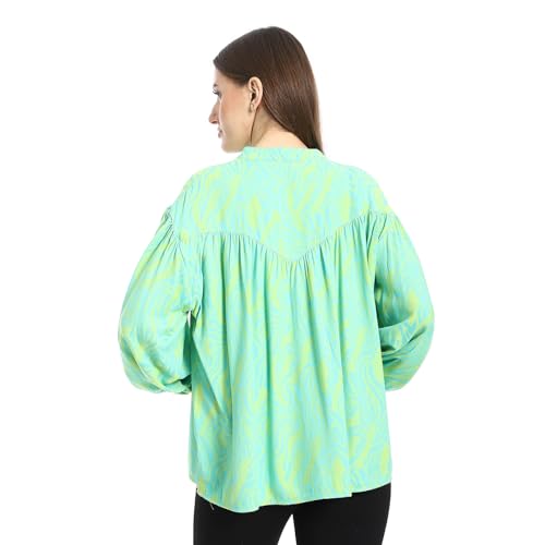Coctail - بلوزة باكمام منفوخة وطباعة تجريدية وياقة ماندرين للنساء - 5639