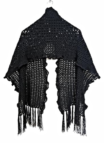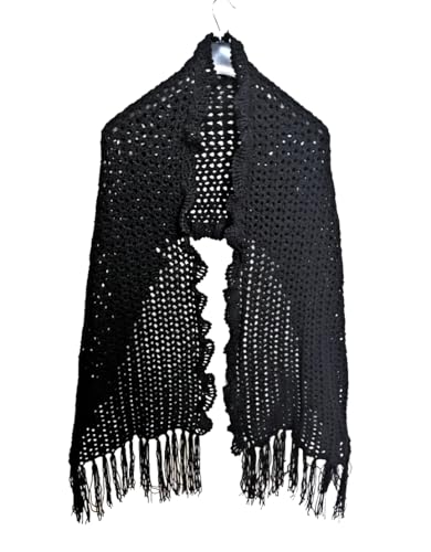 Generic - Women's Black Knit handmade Shawl Wrap, Long Crochet Pattern with Fringe Tassels, Winter Fashion Scarf Size 200x50 cm