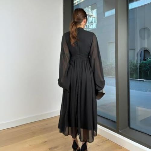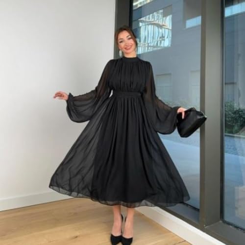 Generic - فستان نسائى شيفون ببطانة يتميز باكمام واسعة