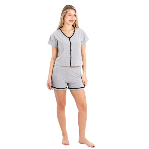 ZECOTEX - Women’s Classic 100% Cotton Pajama Set | Soft Button-Down Top & Shorts | Lightweight Sleepwear & Loungewear | Sizes XS to L