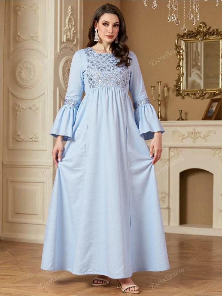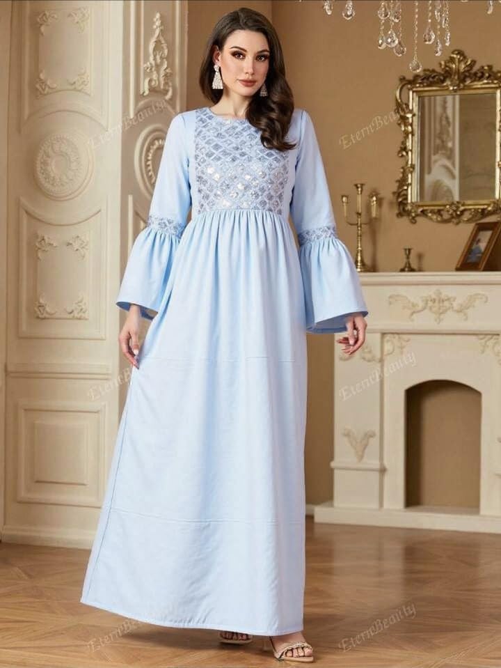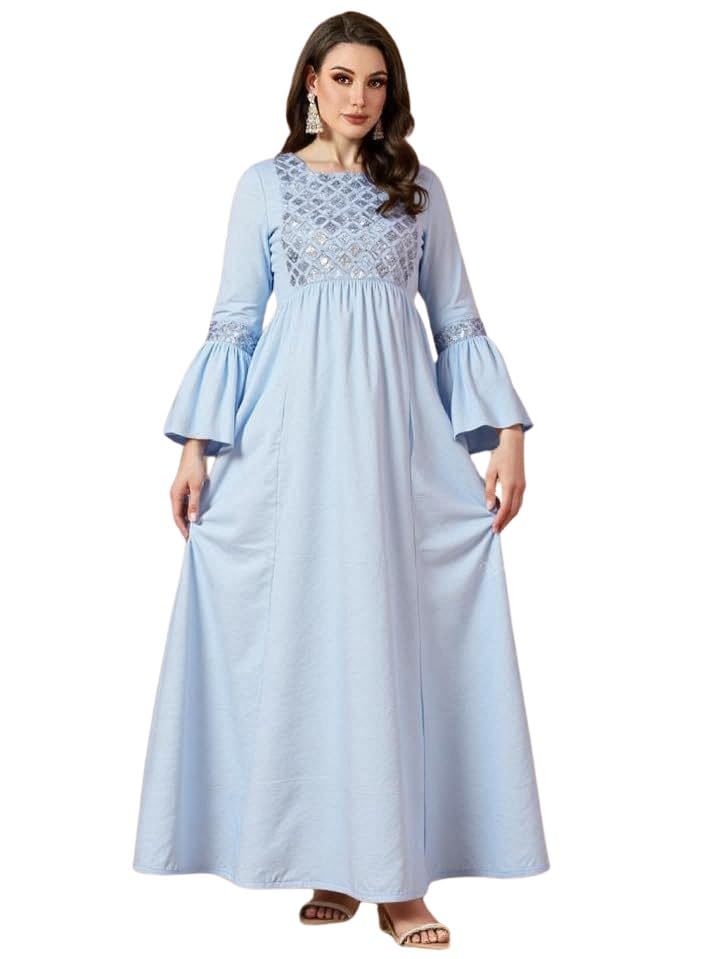 Generic - جلابية استقبال حريمي قطن – كم مروحة وأستيك على الخصر – تصلح كدريس خروج – مقاس 1 (60–85 كجم) ومقاس 2 (85–120 كجم)
