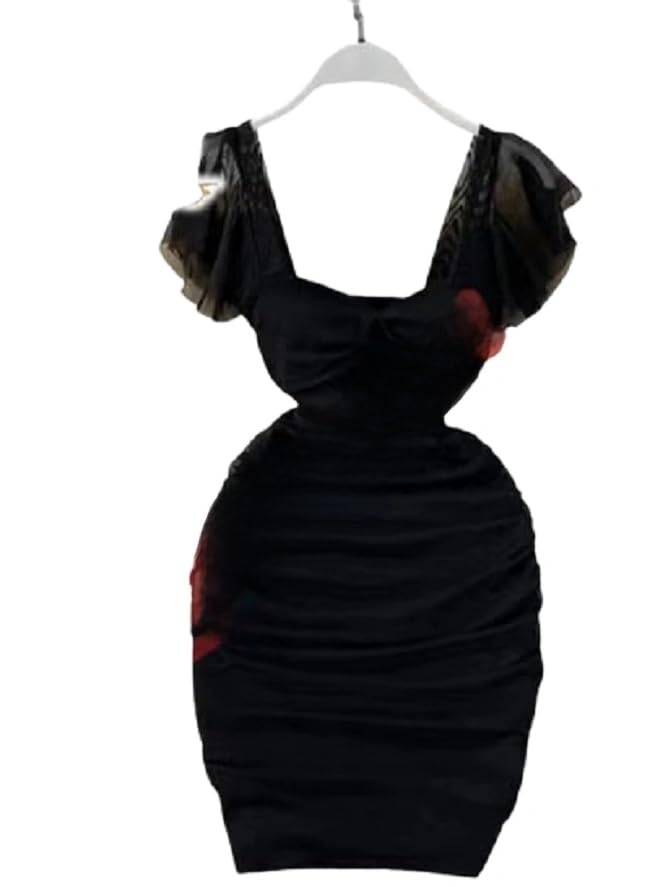 Generic - Women's Elegant Ruched Bodycon Dress, Short Flutter Sleeve, Sweetheart Neckline, Form-Fitting Style up to 65 KG