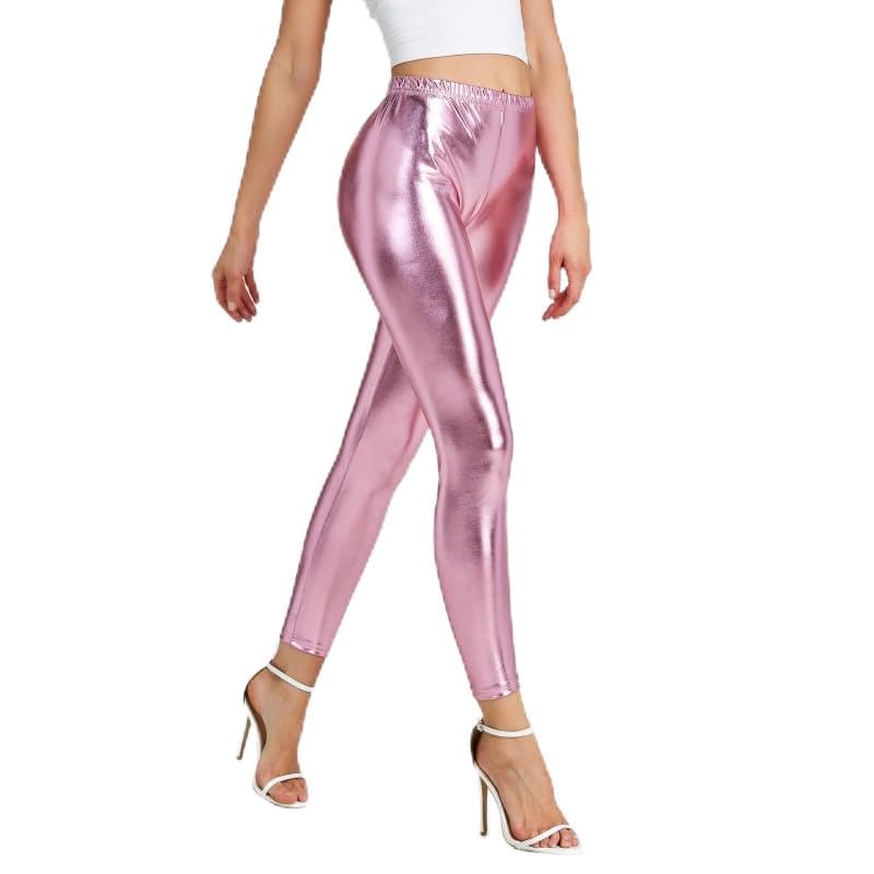 Generic - ليجنز نسائي عصري من الجلد والليكرا، ألوان متعددة ، تصميم ديسكو براق