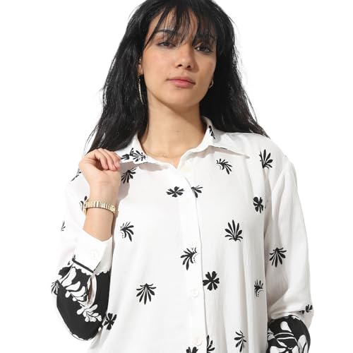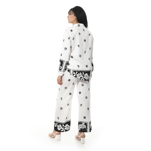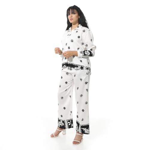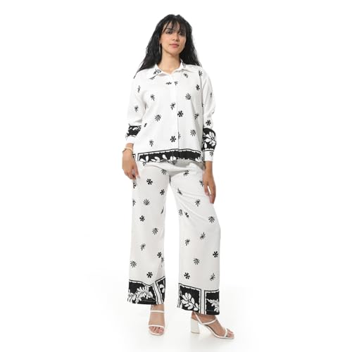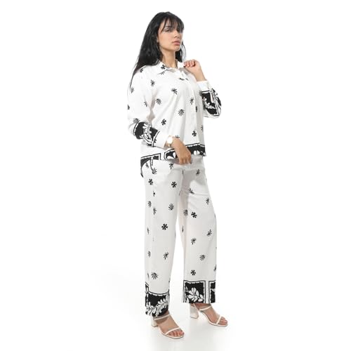Coctail - طقم مطبوع عليه زهور للنساء، بلوزة باكمام طويلة وازرار سفلية وسروال - 19365