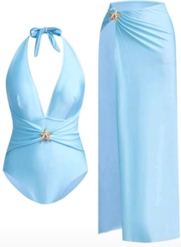 Generic - مايوه قطعة واحدة للنساء بقبة برباط مزين بتفاصيل مكشكشة من قطعة واحدة وتنورة للعطلات الصيفية والشاطئ، ملابس للخروج