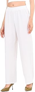 Generic - Women's High-Waisted Wide Leg Pants with Front Slits, Cream White, Ankle Length size M