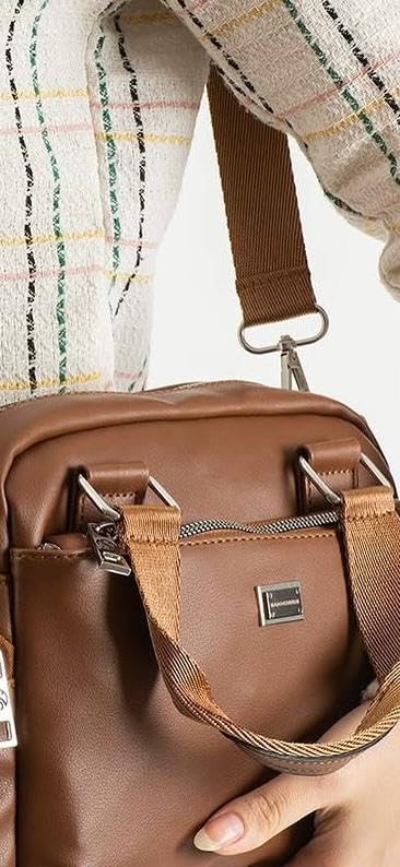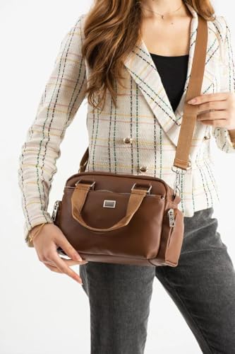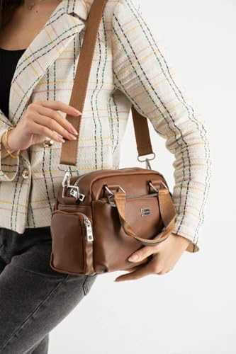 Generic - Women's Leather Multi Zipper Bag – Elegant Inner Lining – Colors (Black/Navy/Brown/Beige – Practical Design for Outing and Traveling