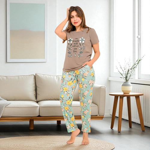 Generic - Women's Pajama Set - Summer Women Pajamas - 2 Piece Pants and T-Shirt Set - Different Shapes and Specially Designed for Sleep Comfort.