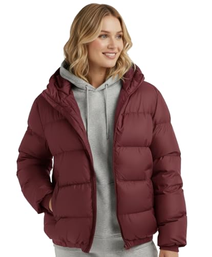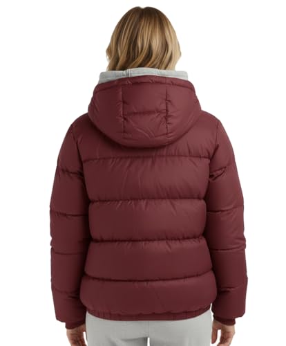 Generic - Women's Puffer Jacket, Burgundy, Hooded, Quilted Design, Winter Coat