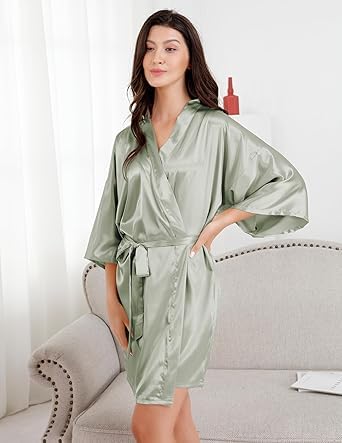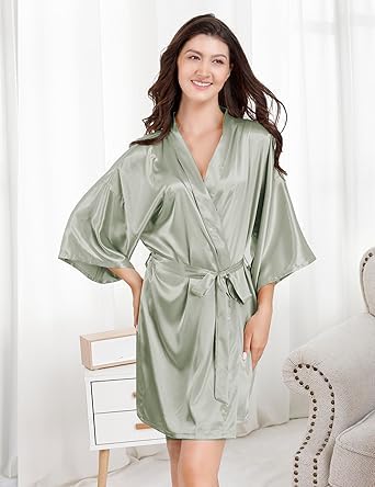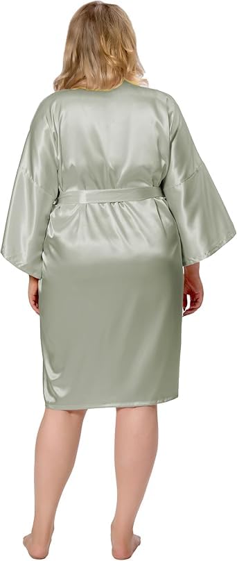 Generic - Women's Satin Short Lingerie Robe with Wide Sleeves Mint Green Special Size 90:130kg