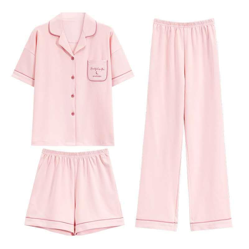 Generic - Women's Short Sleeves cotton Pajama Set with Shorts with pants - pink, XL