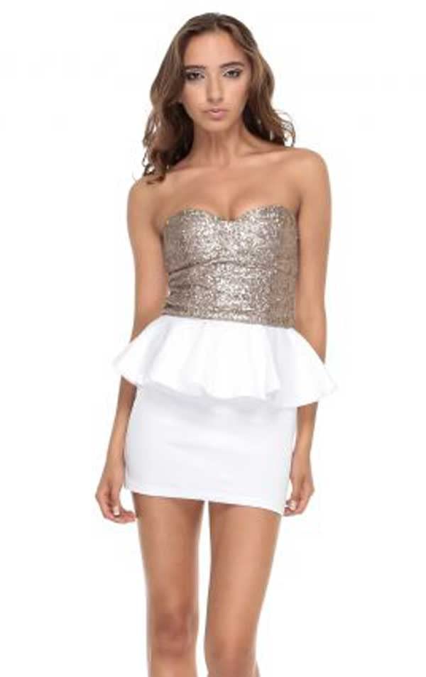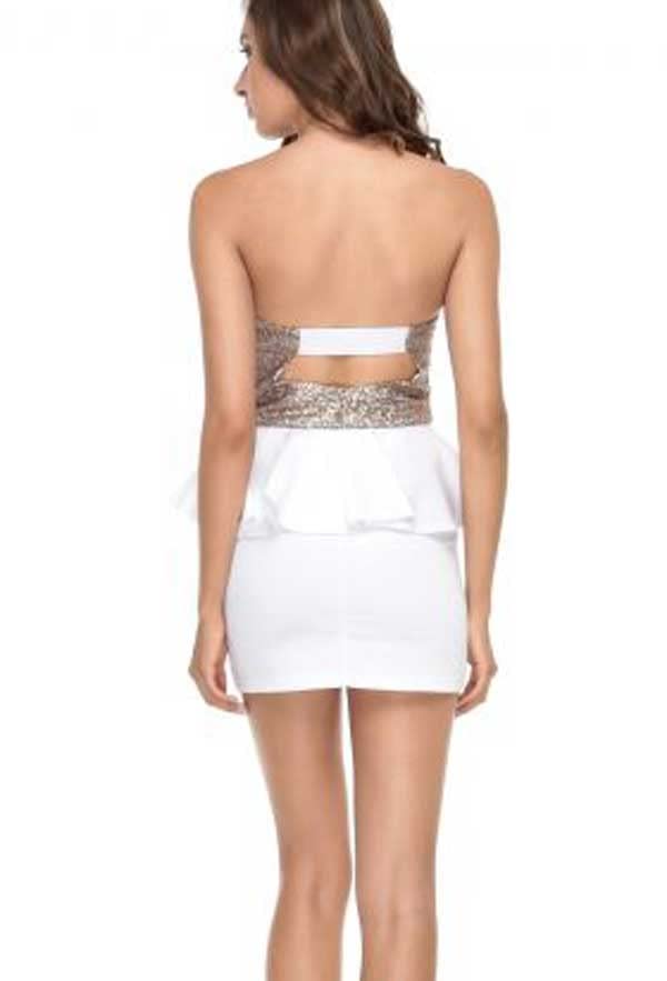 Generic - فستان نسائى ابيض قصير بترتر فضى من الصدر