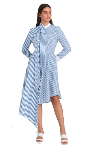 Generic - Women's Striped Cotton Shirt – Asymmetric Design with Long and Short Side – White Collar and Cuff – Size M