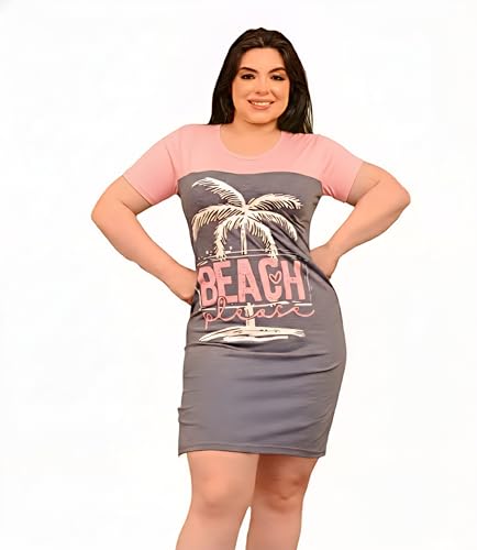 Tony Tex - Women's Summer Beach Dress Gray Short Sleeve Colorful Plus Size Short Dress