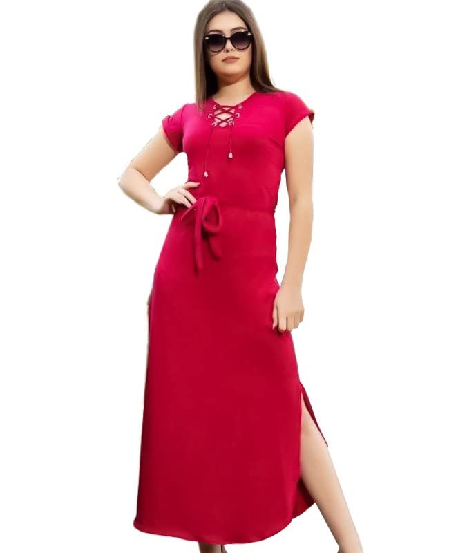 Generic - فستان نسائى نص كم بفتحة جانبية لون احمر