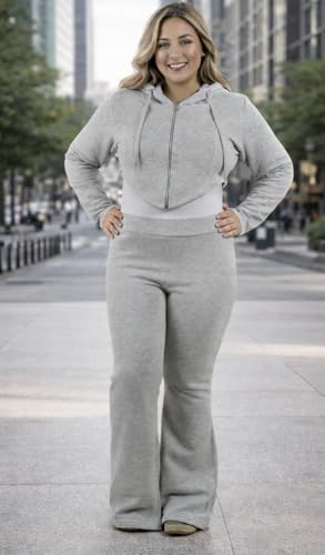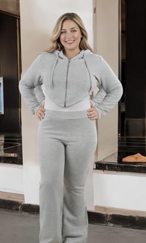 Generic - Women's Tracksuit Set, Grey, Zip-Up Hoodie and Flare Pants, 2-Piece Loungewear size M