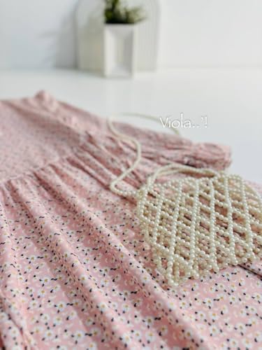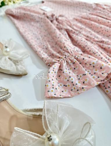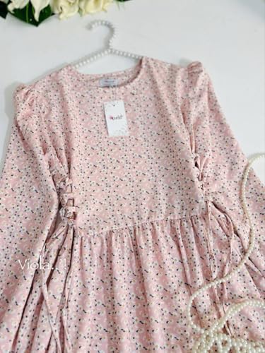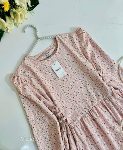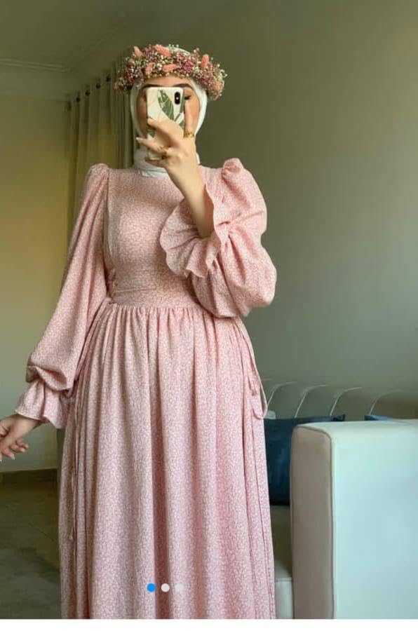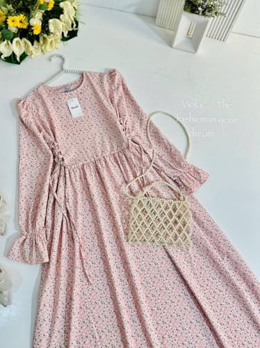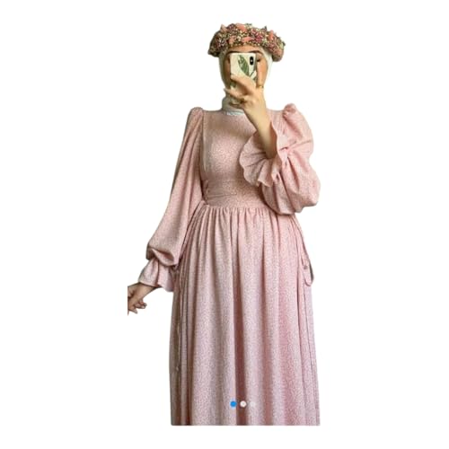 Generic - فستان نسائي طويل بأكمام منفوخة، تصميم كلاسيكي، لون وردي فاتح مع نقوش صغيرة
