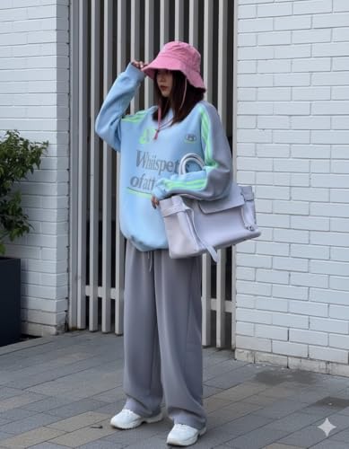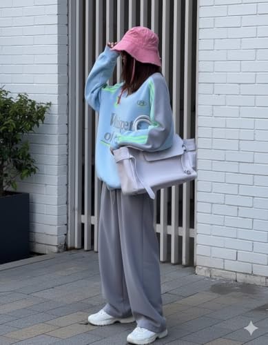 Generic - سوت شتوي نسائي قطعتين ميكس ألوان –بلوزة أوفر سايز + بنطلون وايد ليج مريح خامة ميلتون شتوي فاخرة – مقاس وان سايز حتى 85 ك