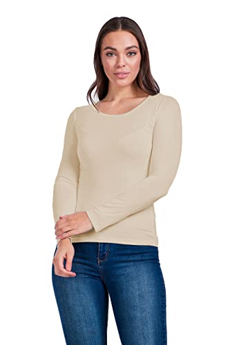 Generic - Womens Long Sleeves Round-Neck Cotton Undershirt Basic (Beige, Large)