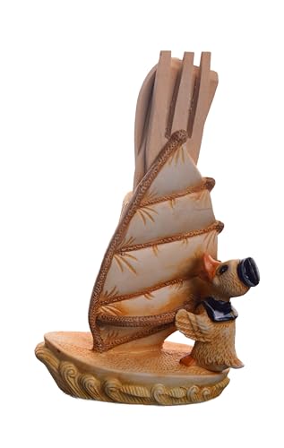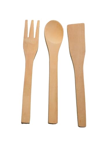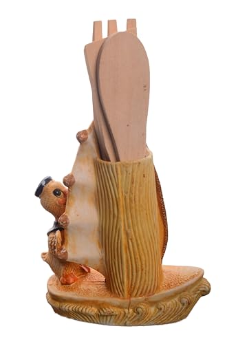 Generic - Wooden Cooking Spoons With Decorative Holder, 3 Pieces - Beige BT3