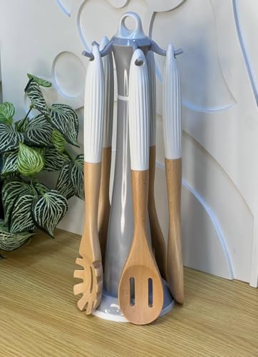 Generic - Wooden x Silicone Kitchen Tools Set 5 Pieces with Plastic Holder - Modern Design - High Quality