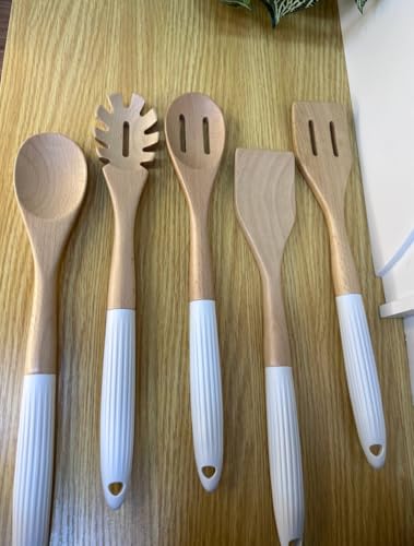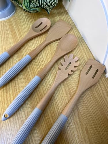 - SAFE & HIGH QUALITY MATERIAL: Heat Resistant Silicone Heads + Natural Wood Handles For Comfort In Use.