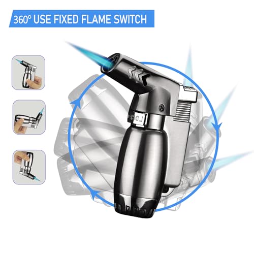 - [Small & Portable] Perfect tiny size with light weight and easy to use, which fits in your pocket to carry it and feels good in your hand. Premium quality and ergonomic in the hand. Well built compared to other torch lighters. (NOTE: Butane not included due to airmail regulation.)