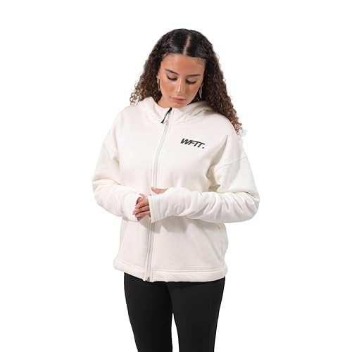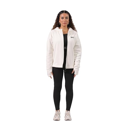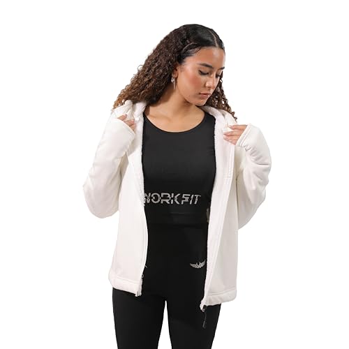 Work Fit - سويت شيرت بسوستة أمامية وغطاء للرأس للنساء من Work Fit - ابيض