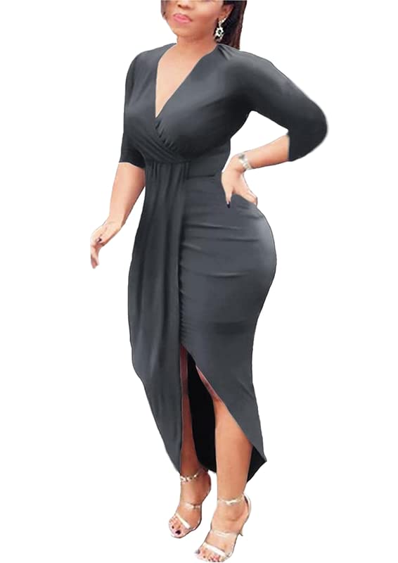 FG - فستان لف - ليكرا - لون رصاصي للنساء