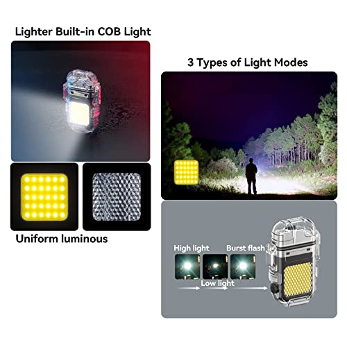 - 💡【3 Mode of Illumination】The dual arc plasma lighter has a survival flashlight with 30 functional COB LED lights. The ultra-bright lights offer 3 mode of illumination system with dim, bright, and strobe light settings.