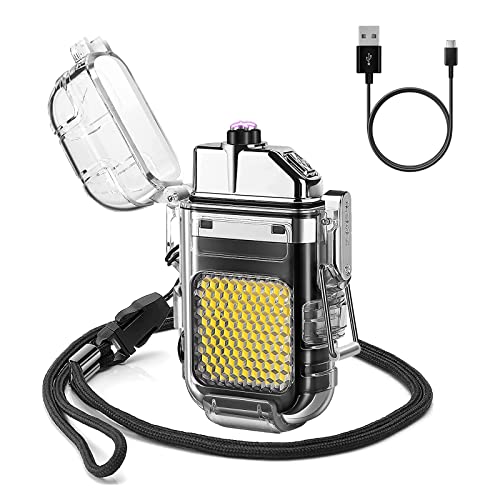 X spring - X Spring Dual Arc Waterproof Electric USB Rechargeable Lighter With 30 COB LED Lights and 3 Modes of Flashlight for Camping, Hiking, Traveling (Black)