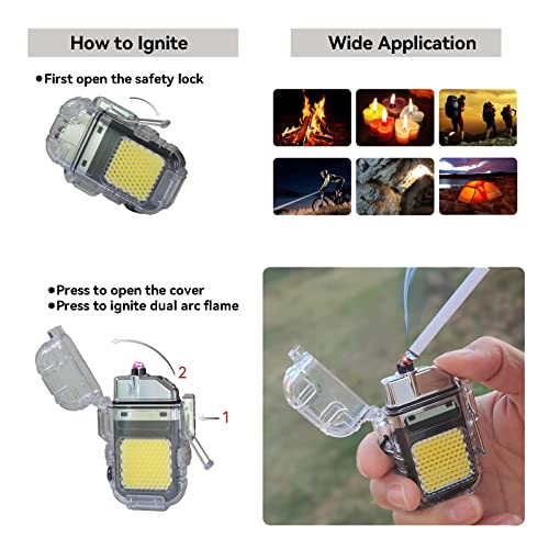 - 💧【Waterproof Lighter】Waterproof lighter, transparent case with metal-ring sealed lighter cover and locking clasp, water does not seep inside, no fear of rain. The electric lighter works ideally even though you take it out from the water.